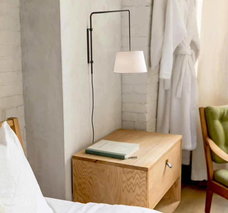 Hemos rediseñado las lámparas de pared Arco incorporando nuevas dimensiones del brazo y nuevas formas y acabados de las pantallas. En esta nueva versión el soporte se fija directamente a la pared y la lámpara se conecta a través de dos sistemas diferentes, con conexión directa a través de un florón desplazado o mediante una conexión enchufable.
