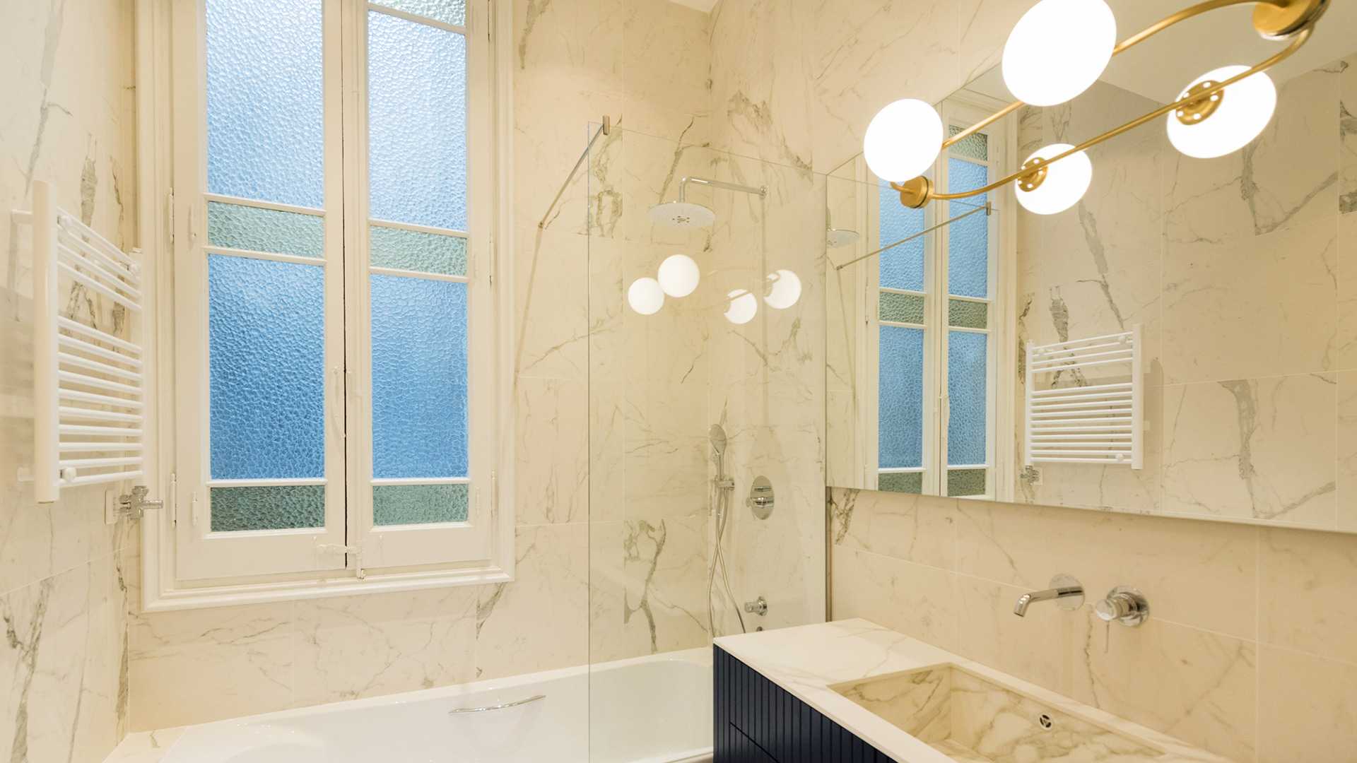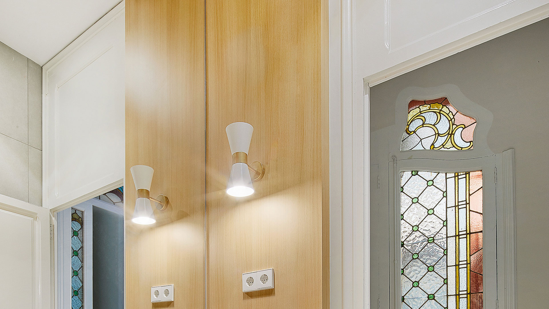 For the lighting project of this modern house, located in the neighbor Ensanche in Barcelona, the Lymington and Uec wall lamps were chosen from our catalogue. For one of its bathrooms, we designed customized wall lamps with the same style.