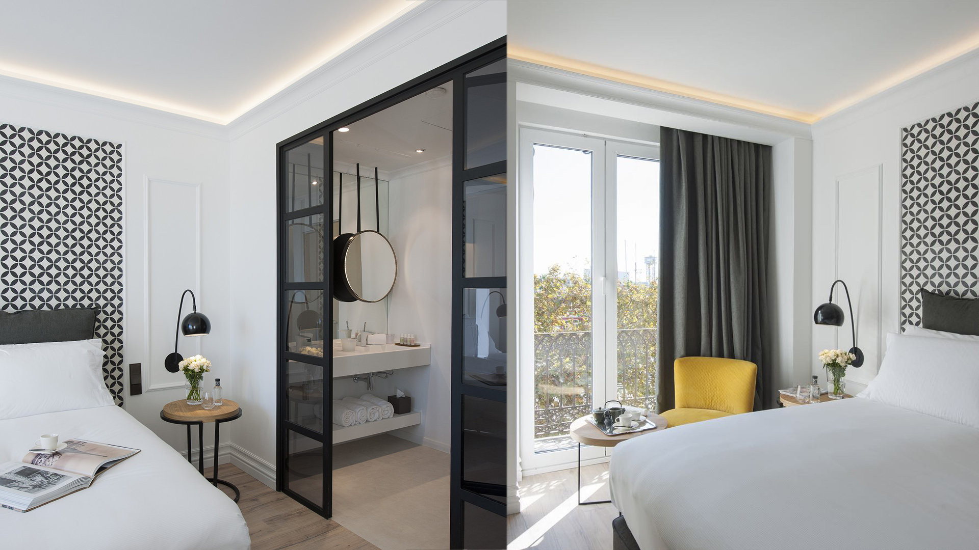 Project for this luxury hotel with mediterranean style. A custom-made wall lamp inspired by our collection Brooklyn which adds an avant-garde touch to these hotel bedrooms.