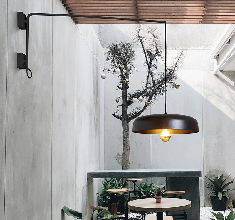 Estructura en Blanco roto texturado o Negro texturado. Pantalla metálica. Cable eléctrico de PVC negro.