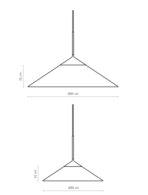 The lamps from the Cim collection are made with light materials for its shades and the generous dimensions of its conical volume give personality to the collection.