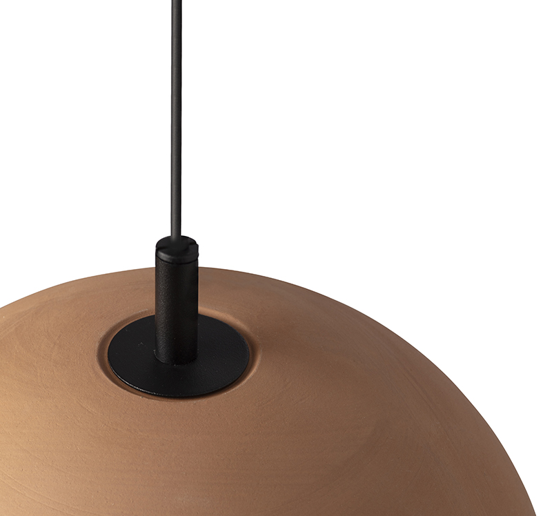 Handmade ceramic lampshade in terracotta, either in raw finish or varnished in off-white color.