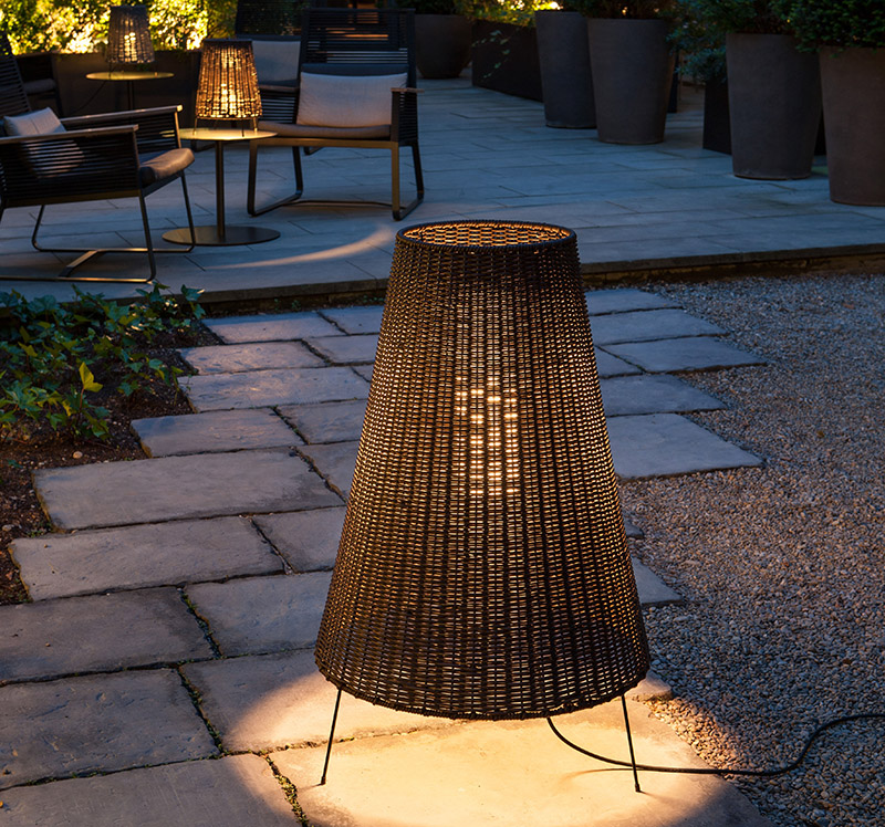 Su diseño evoca su característica forma cilíndrico-cónica, con una parte superior más estrecha que la inferior. La luz interior representa el cebo, mientras que el trenzado exterior, hecho a mano en mimbre o cuerda, ha sido realizado por maestros cesteros siguiendo la tradición artesanal.