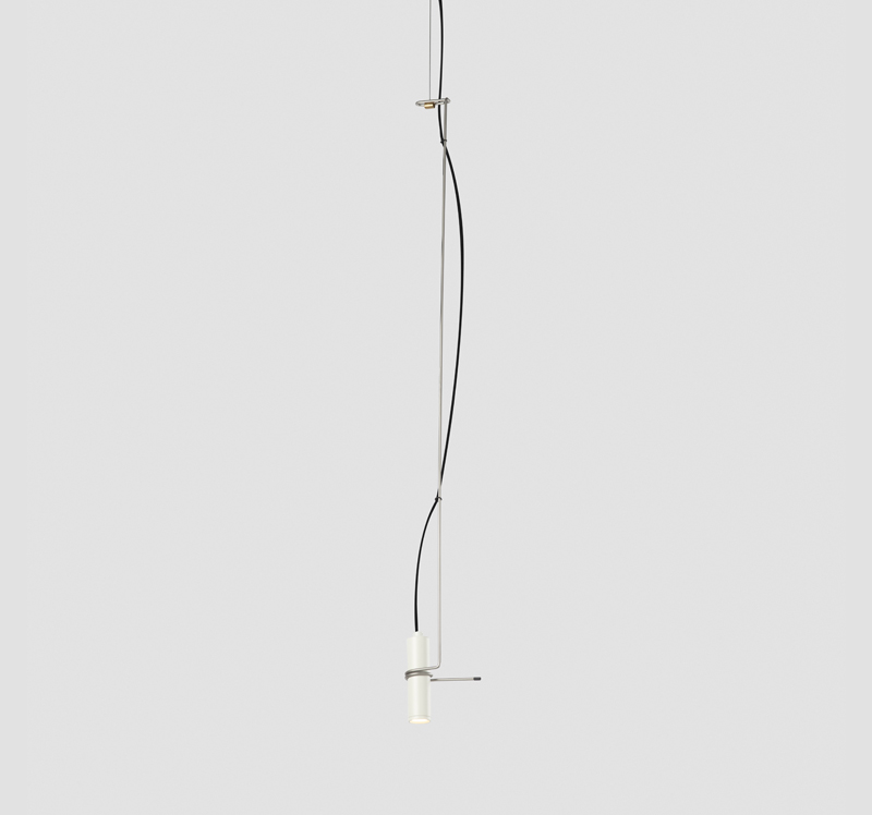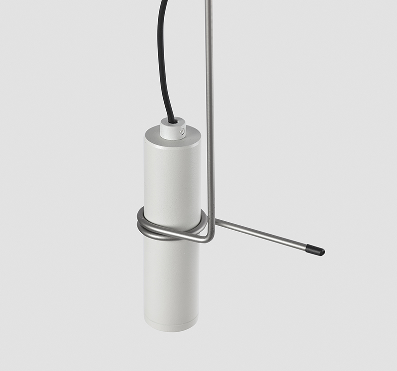 Hold is a collection featuring a cylindrical diffuser that emits a soft ambient light combined with a more focused illumination. The rod, which twists around the diffuser, gives life to a luminaire with a unique personality. The tension of the rod, together with the solidity of the light source, come together to create an object that communicates its design and function clearly and directly, without the need for additional elements. The connection between the two, through friction, evokes a sense of lightness and sobriety. Overall, the piece stands out for its character and slender proportions, playing with verticality and a distinctive elegance.