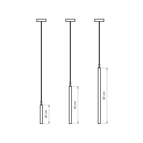 Tubular body diameter 2,5 cm. Height 20, 40 or 60 cm.