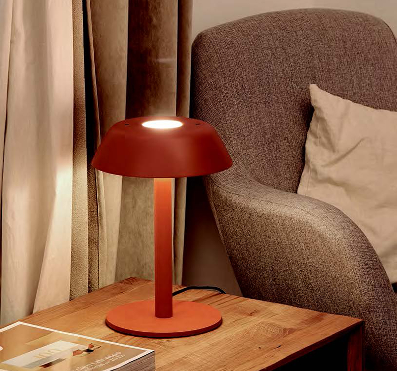 With this design, Xavier Solé wanted to reinterpret the classic incandescent light lamps by integrating two types of lamps into one. The dimensions of the central tube allow it to have a stable and safe lighting source for the hospitality sector. The incorporation of led light inside the lampshade is subtly reflected inside the lampshade, creating a contrasted lighting environment