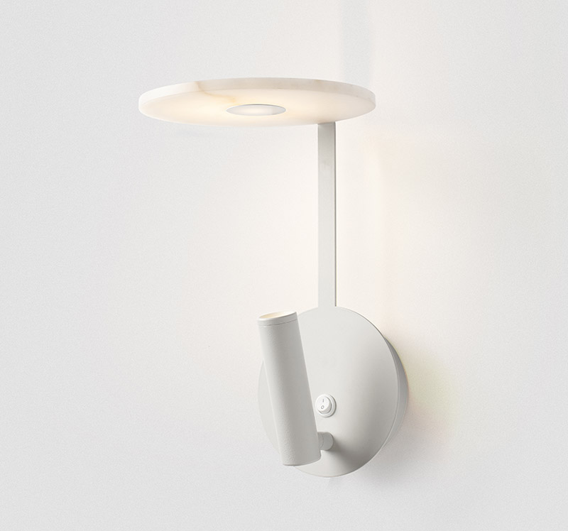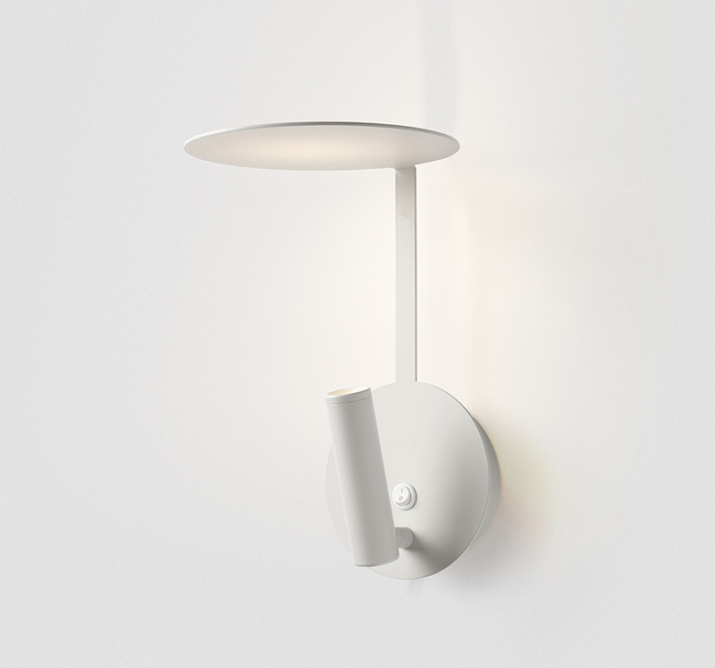 El resultado es un aplique minimalista y discreto, compuesto por una pantalla que oculta un foco orientable con rotación de hasta 340 grados.