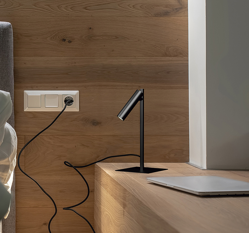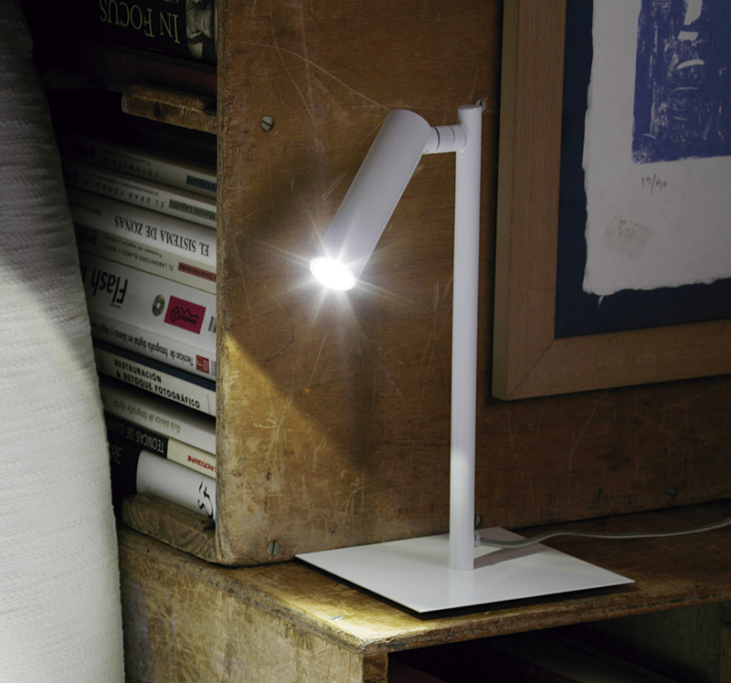 La colección Manhattan es funcional y versátil. Su potente foco lector puede dirigirse en cualquier dirección y resulta ideal como lámpara de sobremesa sobre una mesa auxiliar o en una estantería.