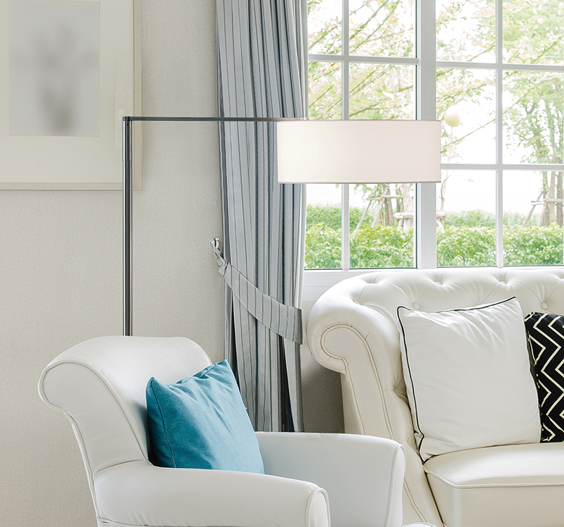 La lámpara de pie Matrix con su brazo articulado que se extiende formando un ángulo recto perfecto se adapta muy bien a cualquier espacio.