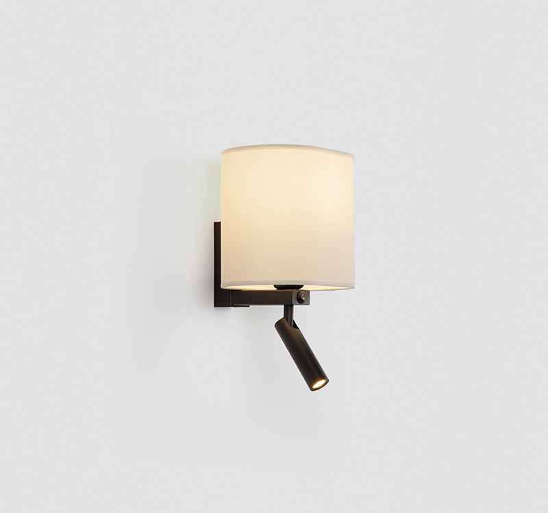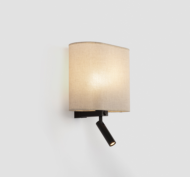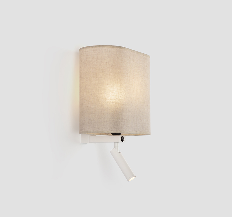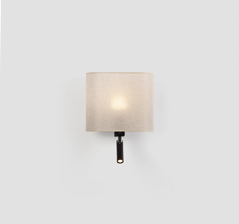 OITA es una lámpara clásica de pantalla ovalada, con lector incorporado en su base, de reducidas dimensiones. Su forma básica y elegante permite ubicarse indistintamente en habitaciones de Hoteles o en el hogar.