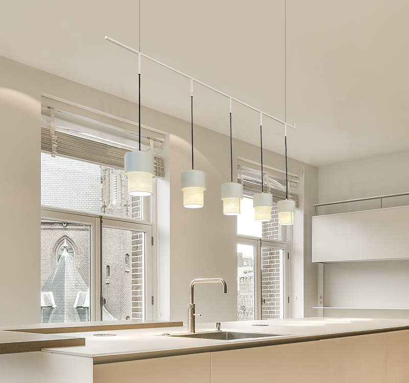 Inspirada en los juegos de encajes entre módulos, la colección Kan quiere crear un efecto de luces entre piezas que se iluminen mútuamente y que permitan matizar la luz para crear espacios amables y cálidos. Un juego entre texturas, frías en la parte metálica y cálidas en la parte téxtil. Cada pantalla téxtil es intercambiable y sus múltiples combinaciones la convierten en una colección versátil y que ofrece soluciones para espacios y ambientes diversos. Kan funciona sola y también a partir de repeticiones.