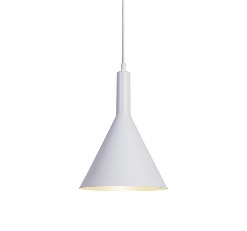 La lámpara de suspensión Capuchina, con su pantalla metálica cónica y contemporánea queda suspendida de forma elegante sobre mesas de cocina, espacios de trabajo o comedores.