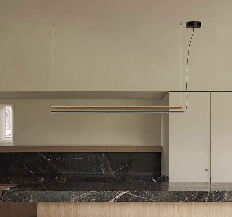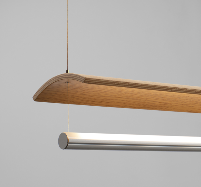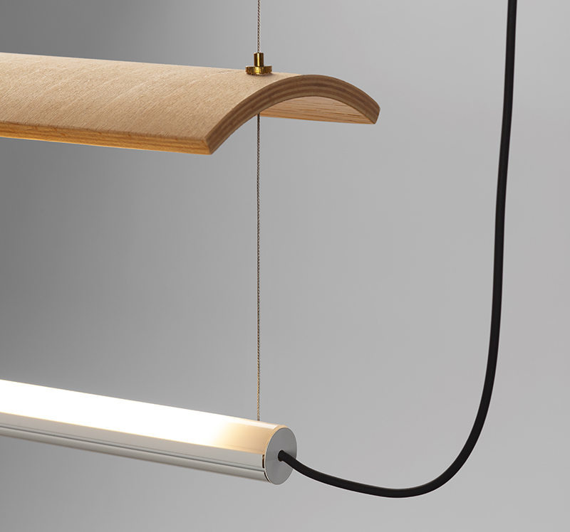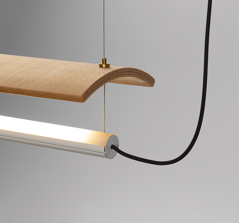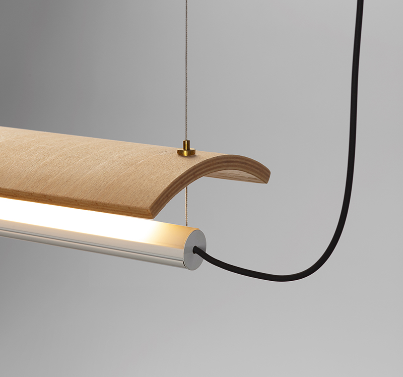 El contrachapado multicapa y la tecnología adecuada permiten curvar la madera con el mínimo espesor posible y gracias a la tecnología LED, se consigue que la fuente lumínica ocupe el mínimo espacio y grosor.