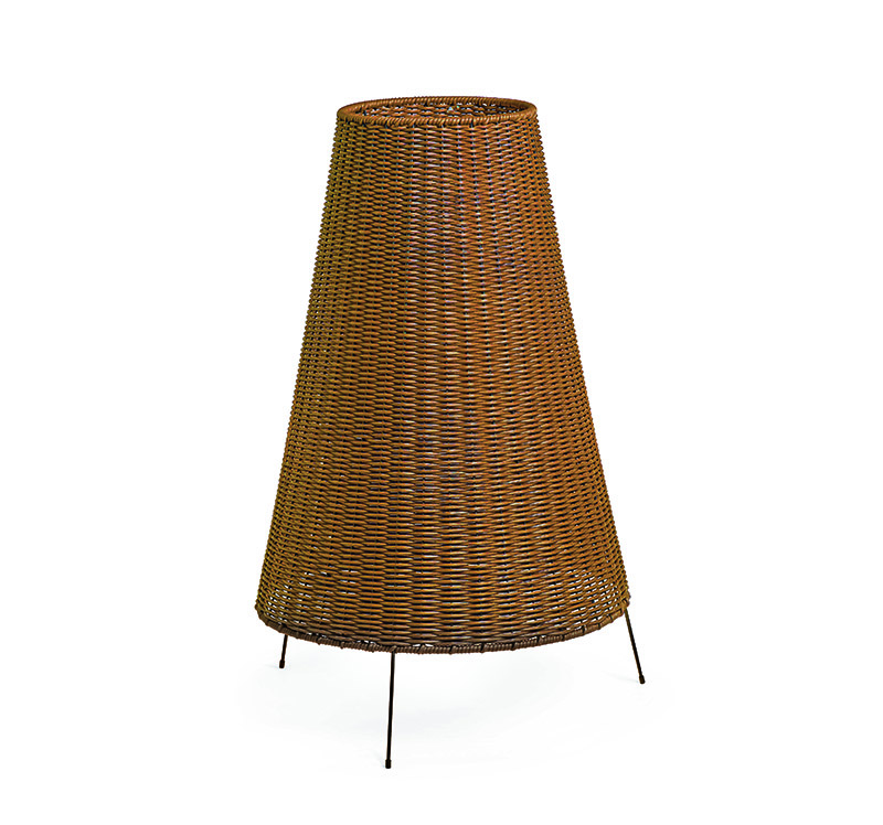 Su diseño evoca su característica forma cilíndrico-cónica, con una parte superior más estrecha que la inferior. La luz interior representa el cebo, mientras que el trenzado exterior, hecho a mano en mimbre o cuerda, ha sido realizado por maestros cesteros siguiendo la tradición artesanal.