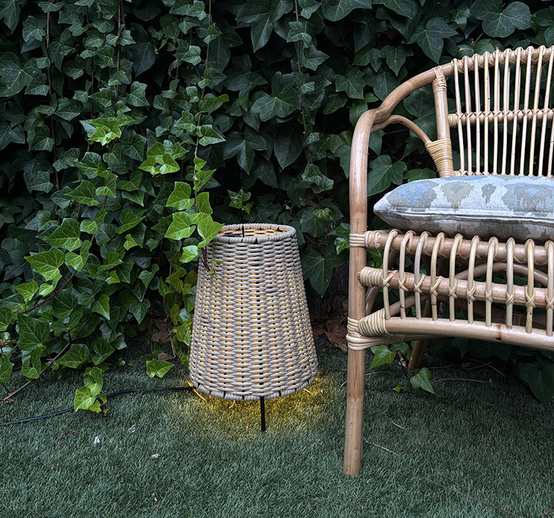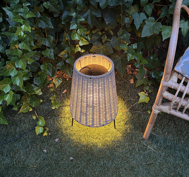 Pantalla: Trenzada a mano con cuerda de poliéster reciclable y no tóxica de color cáñamo