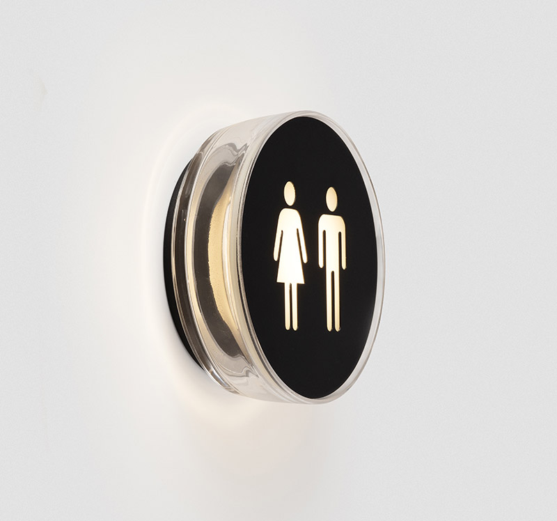 En su versión como aplique de señalización, resulta ideal para entornos contract como hoteles, oficinas o espacios públicos. Su diseño permite la personalización del frontal, que puede combinarse en distintos acabados y colores para integrarse armónicamente en la paleta cromática del espacio.