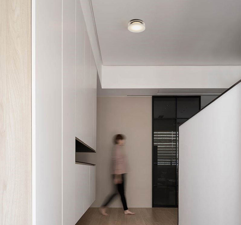 Esta luminaria de dimensiones contenidas y diseño versátil puede instalarse tanto como aplique de pared como plafón de techo y resulta perfecta para su instalación en zonas de transición como pasillos, vestíbulos o distribuidores.