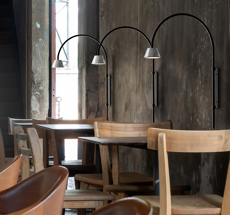 Absidiola amplía la colección Absis expresándose de manera única y explorando nuevas formas de iluminación. Evoluciona en distintas tipologías de producto que se adaptan a cualquier espacio a través de un juego de regulación singular. Apliques y colgantes individuales, lineales o regulables de brazo largo, pies y sobremesas, se trata de una amplia colección con formas sencillas y minimalistas que lucen con alma propia e interactúan en el espacio aportándole personalidad.