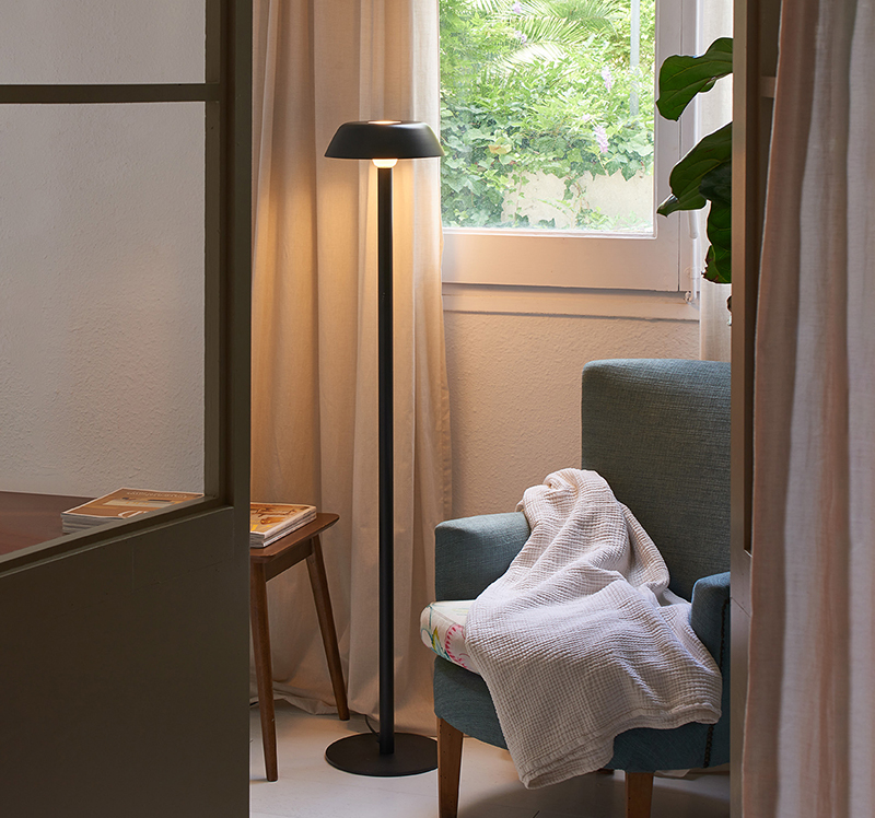 Avec ce design, Xavier Solé a voulu réinterpréter les lampes à incandescence classiques dans des tailles limitées en intégrant deux types de lampes de table en une seule. D’un côté, les lampes avec abat-jour et de l’autre, les lampes avec abat-jour en verre, comme un résultat élégant, sobre et fort reflétant la fusion de ces deux concepts. Les dimensions du tube central lui permettent d’avoir une source d’éclairage stable et sûre à utiliser pour le secteur de l’hôtellerie. Ces qualités peuvent être appréciées dans différents espaces publics, ainsi qu’être intégrées dans les maisons.